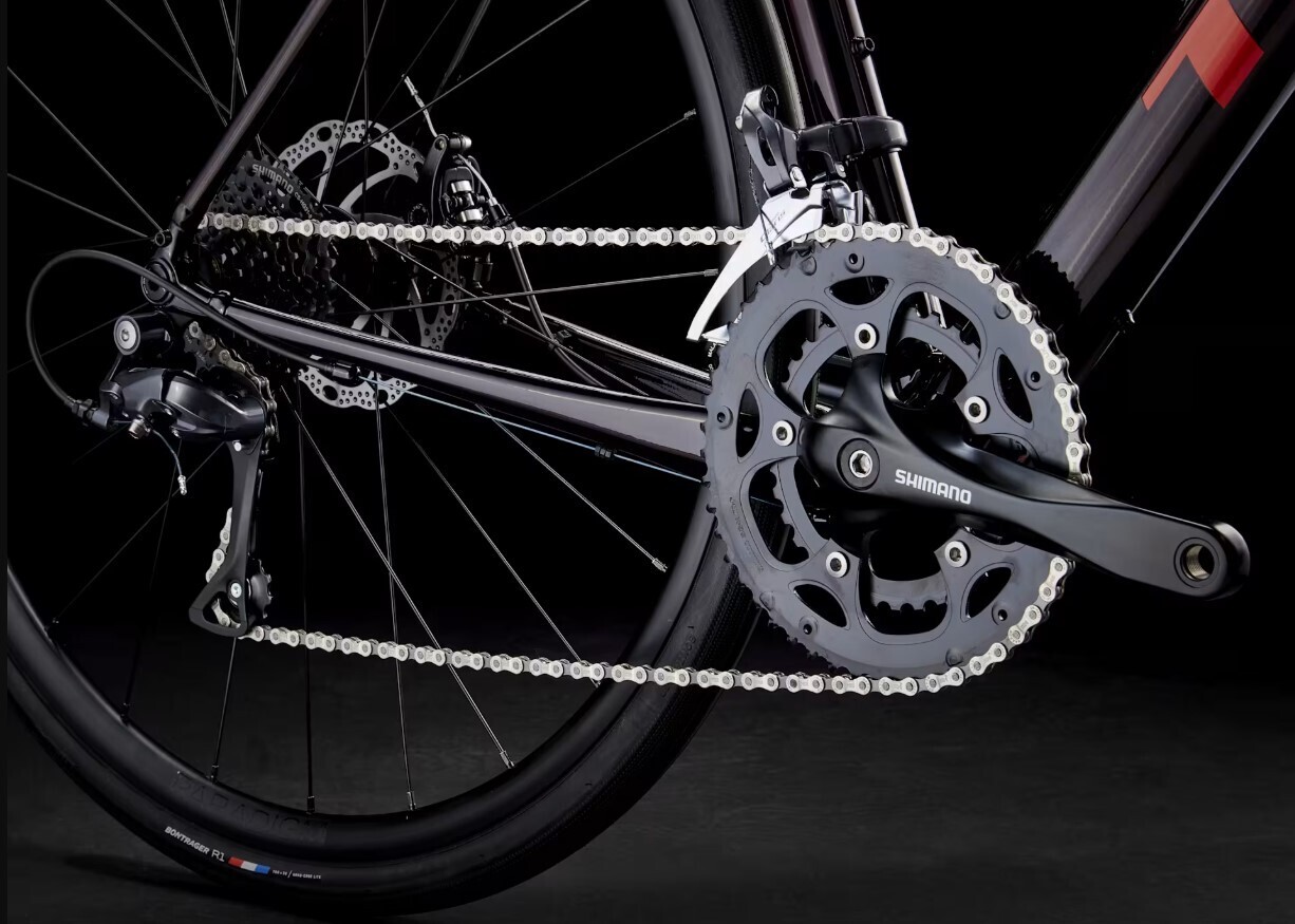 Domane AL карбон, конический карбоновый руль, внутренняя прокладка тормозных проводов, крепления для крыльев, диск с плоским креплением, сквозная ось 12x100 мм