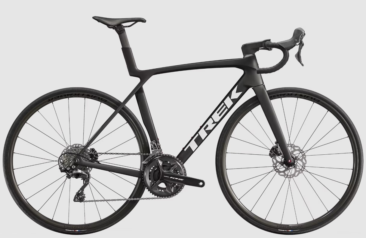 Madone Gen 8 полностью карбоновый, конический карбоновый руль, внутренняя прокладка тормозных тросов, диск с плоским креплением, сквозная ось со скошенными краями 12x100 мм
