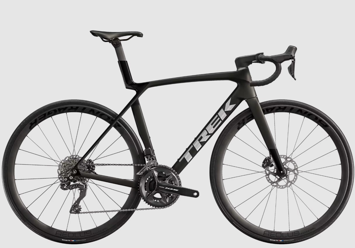 Madone Gen 8 полностью карбоновый, конический карбоновый руль, внутренняя прокладка тормозных тросов, диск с плоским креплением, сквозная ось со скошенными краями 12x100 мм