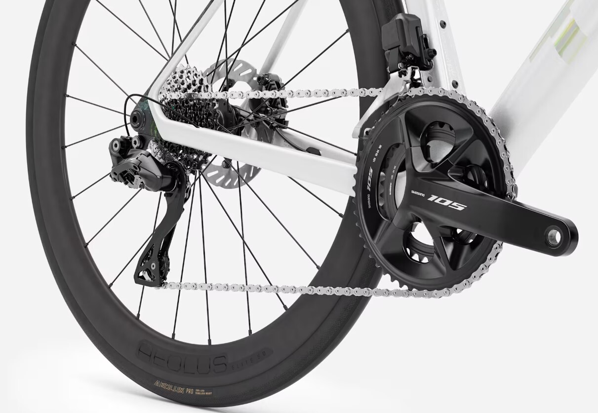 Серия 500 OCLV Carbon, профили труб Full System Foil, подседельная труба IsoFlow, система рулевой колонки RCS, возможно электронное или механическое переключение передач, съемная направляющая цепи Aero, каретка T47, крепление дискового тормоза Flat mount, UDH, сквозная ось 142 x 12 мм