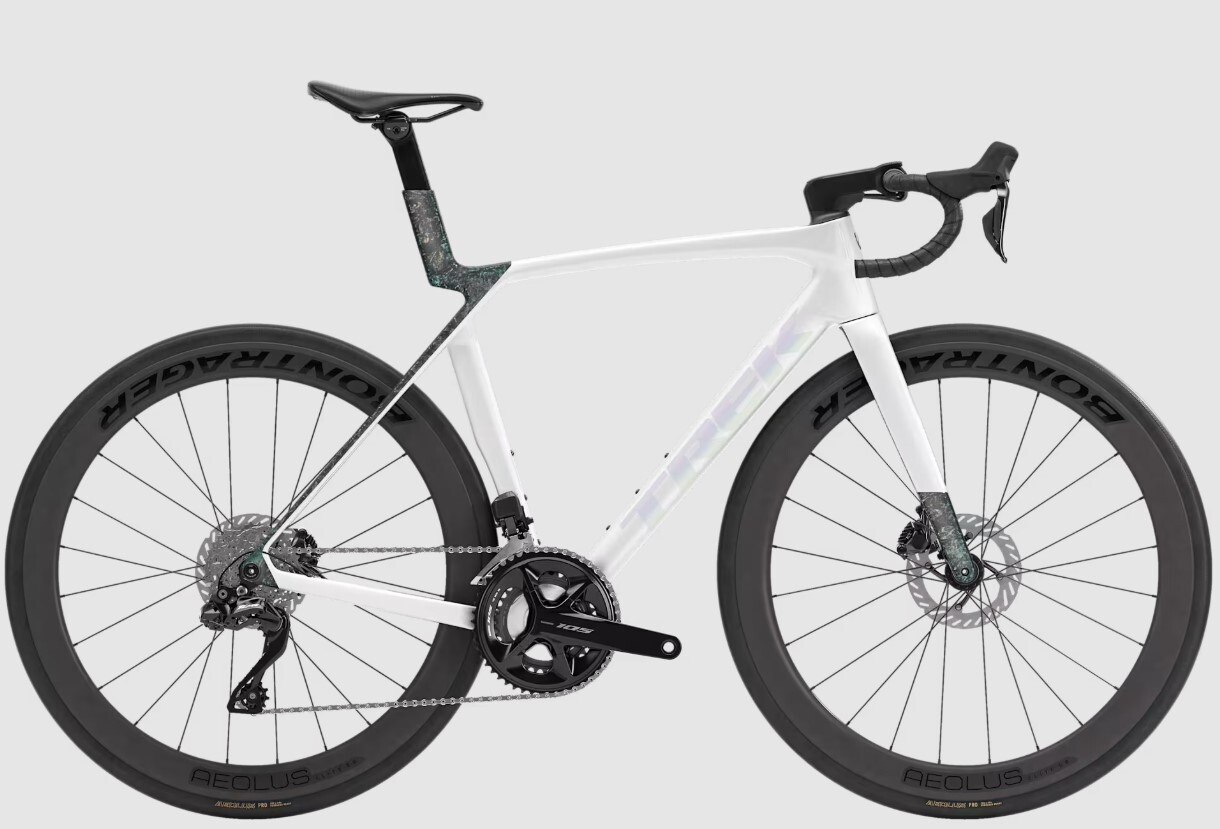 Madone Gen 8, полностью карбоновый, конический карбоновый руль, внутренняя прокладка тормозного троса, дисковый тормоз с плоским креплением, скошенная сквозная ось 12 x 100 мм